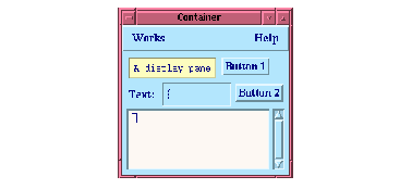 For instance, suppose you want to arrange the elements in your window as shown in Figure 5.3. The two buttons are shown on the right, with the text input pane and a message on the left. Immediately below this is the editor pane.