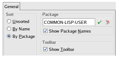 To configure the default sort order for the Symbols list, select Unsorted , By Name or By Package under Sort.