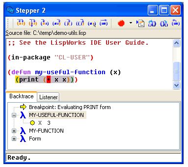 To set a breakpoint from the Stepper, position the cursor where you want the breakpoint and choose
