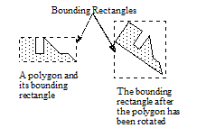 The representation of bounding rectangles in CLIM is chosen to be efficient. CLIM represents such rectangles by storing the coordinates of two opposing corners of the rectangle, namely, the "min point" and the "max point." Because this representation is not sufficient to represent the result of arbitrary transformations of arbitrary rectangles, CLIM returns a polygon as the result of such a transformation. (The most general class of transformations that is guaranteed to always turn a rectangle into another rectangle is the class of transformations that satisfy rectilinear-transformation-p .)