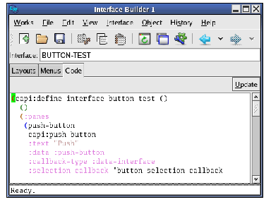 Instead you should use the Interface Builder for the basic design and initial code generation only. Once you have created an interface skeleton for your window or dialog that you are happy with, augment the automatically-generated source code with hand-written code. At this stage, you will use the Editor tool, rather than the Interface Builder, to develop that window or dialog.