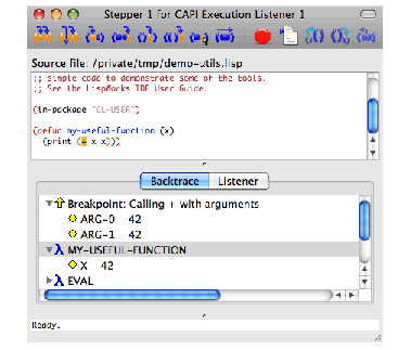 (my-useful-function 42) in a Listener.Figure 25.3 Stepper invoked by reaching a breakpoint