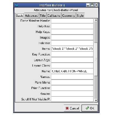 The Attributes dialog lets you set any of the attributes available to the selected object, such as symbol names, titles, and callbacks. This gives you a high degree of control over the appearance of any object in the interface.