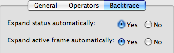 To control the amount of information displayed automatically in the Backtrace area, select the Backtrace tab of the Stepper Preferences: