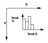 Each window looks into some rectangular area of its drawing plane. The specific area of the drawing plane that is visible is determined by the window's region and coordinate transformation. As the window scrolls downward, the origin of the drawing plane moves above the top edge of the window. Because windows can be located anywhere in the drawing plane, it may be inconvenient to keep track of the coordinates of the drawing plane, and it can be easier to think in terms of a local coordinate system.